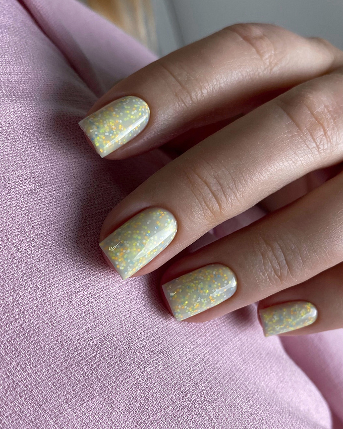 Новые зефирно-йогуртовые гель-лаки с кокетливыми вкраплениями — актуальные цвета для стильных и мечтательных образов.