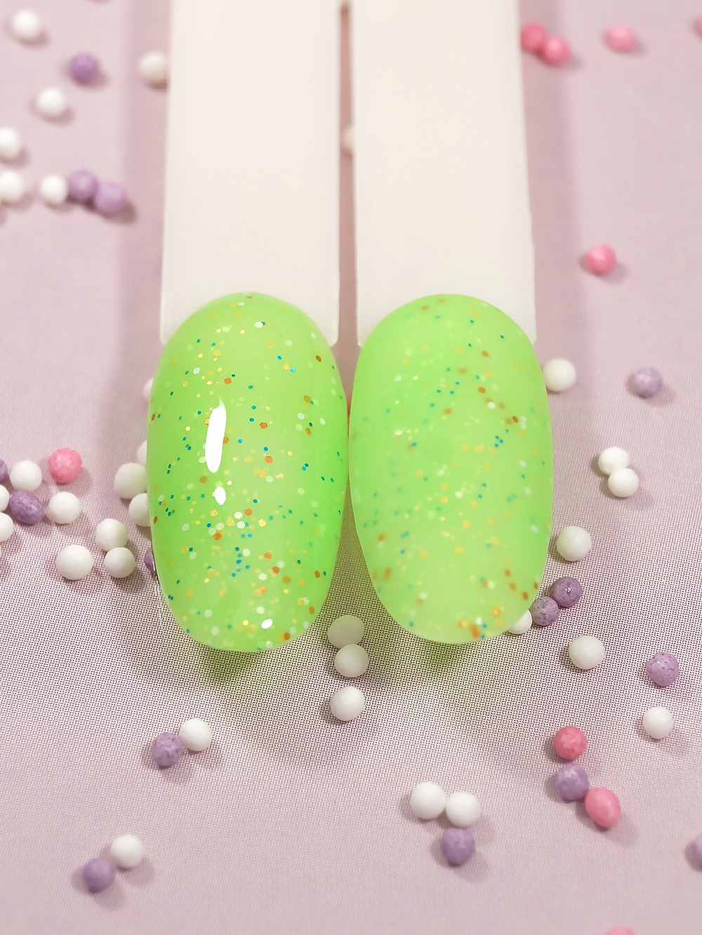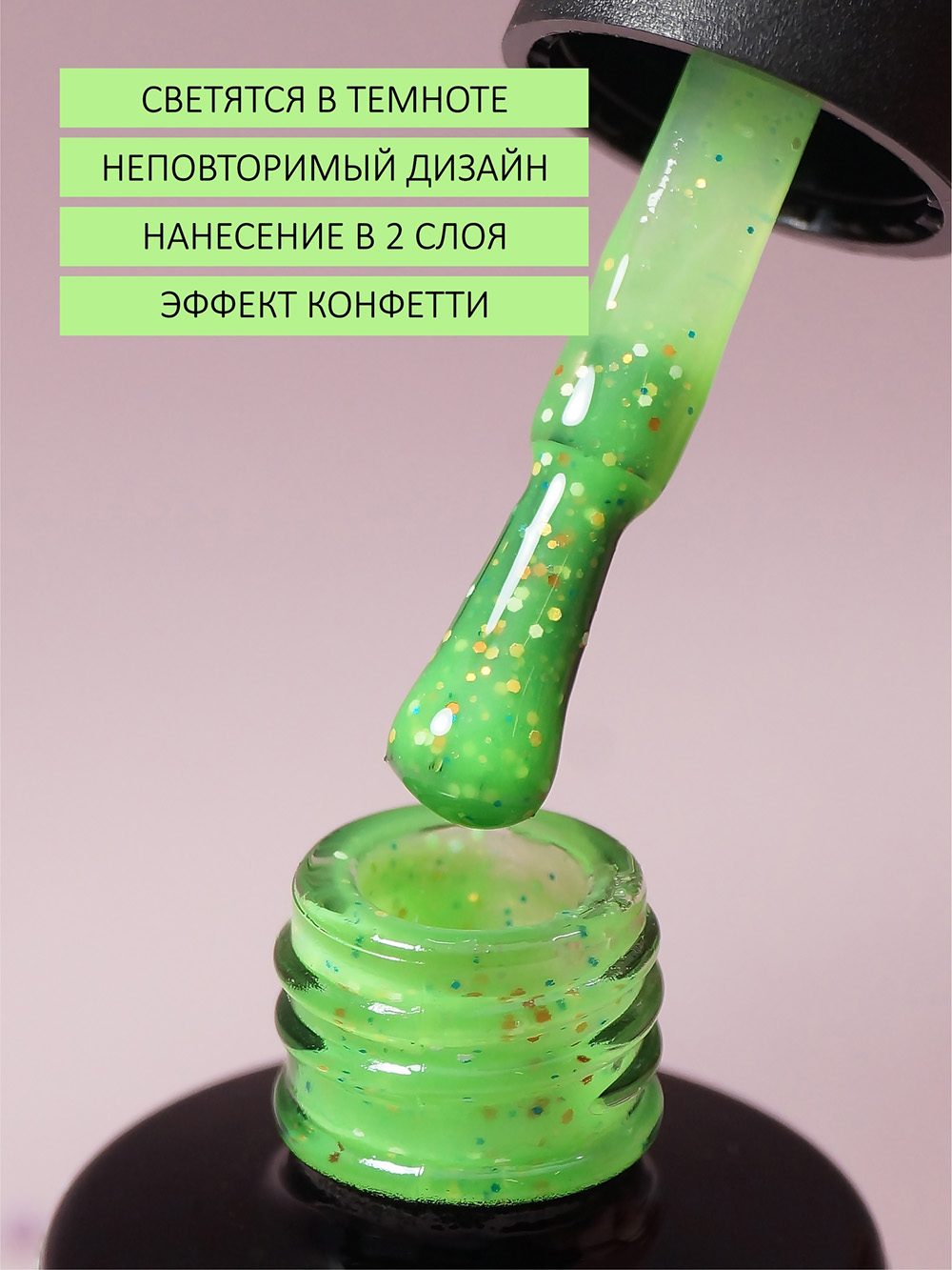 3. покрыть Гель-лак с разноцветными частицами, светится в темноте (Gel polish LOLLIPOP), сушим в лампе 1 минуту;