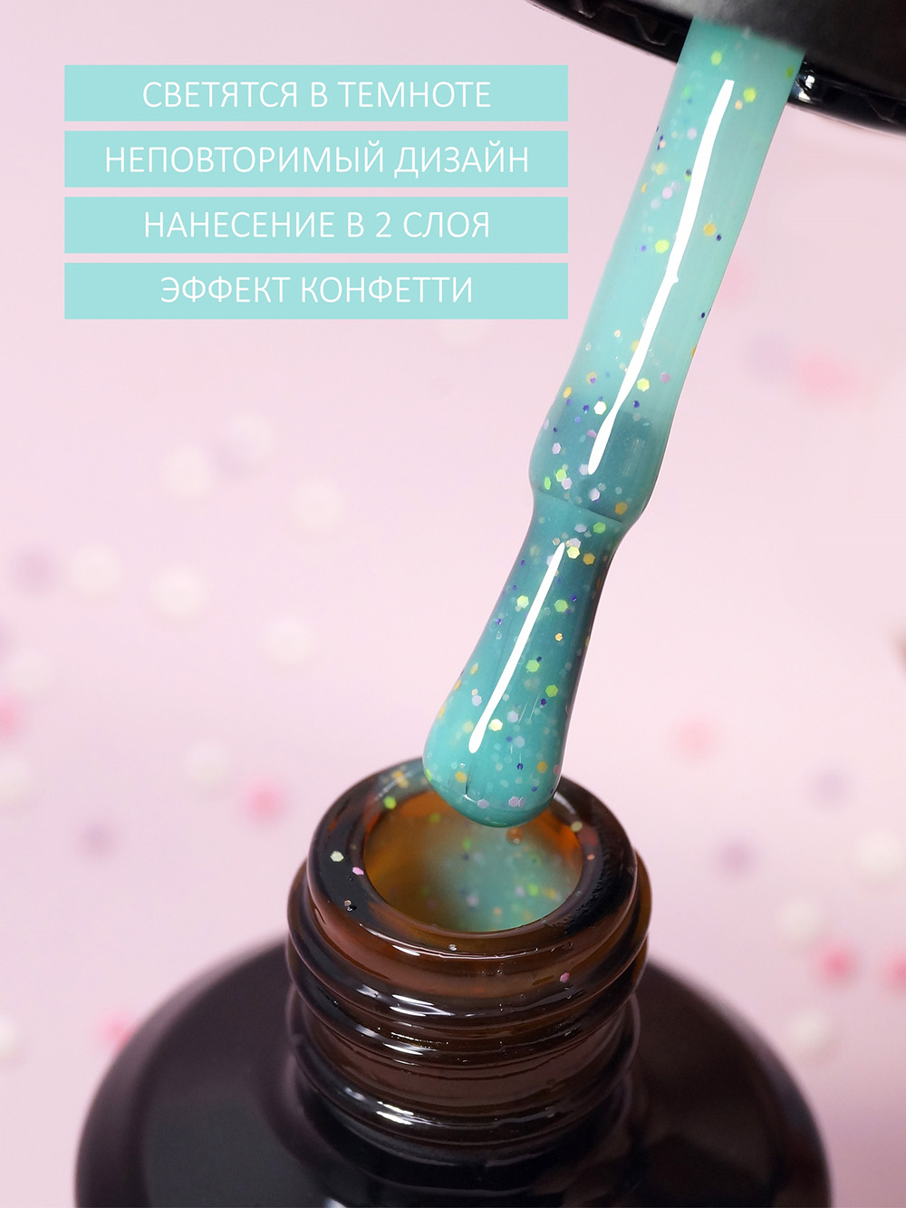 3. покрыть Гель-лак с разноцветными частицами, светится в темноте (Gel polish LOLLIPOP), сушим в лампе 1 минуту;