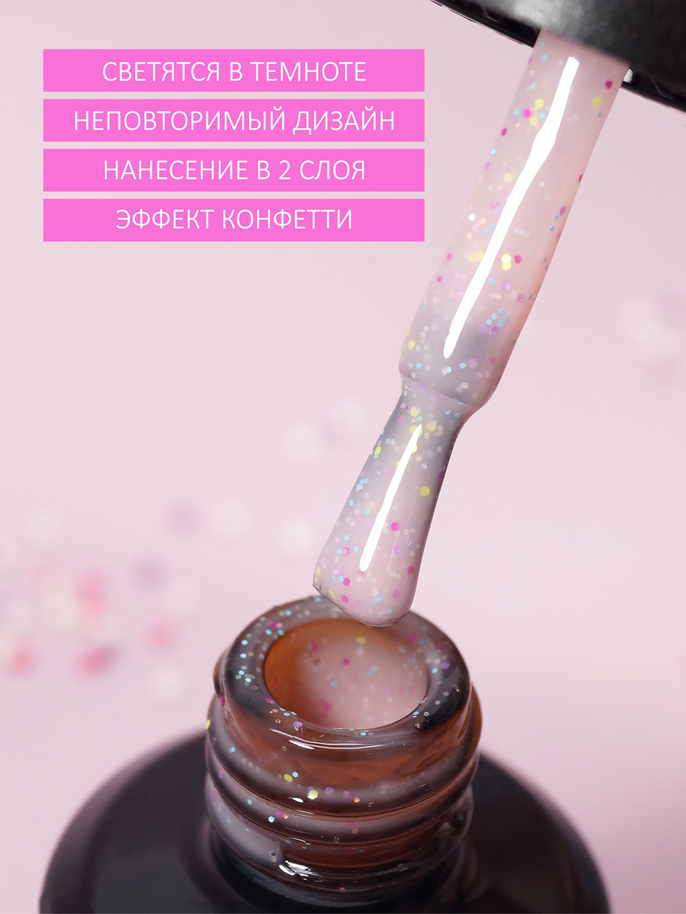 3. покрыть Гель-лак с разноцветными частицами, светится в темноте (Gel polish LOLLIPOP), сушим в лампе 1 минуту;