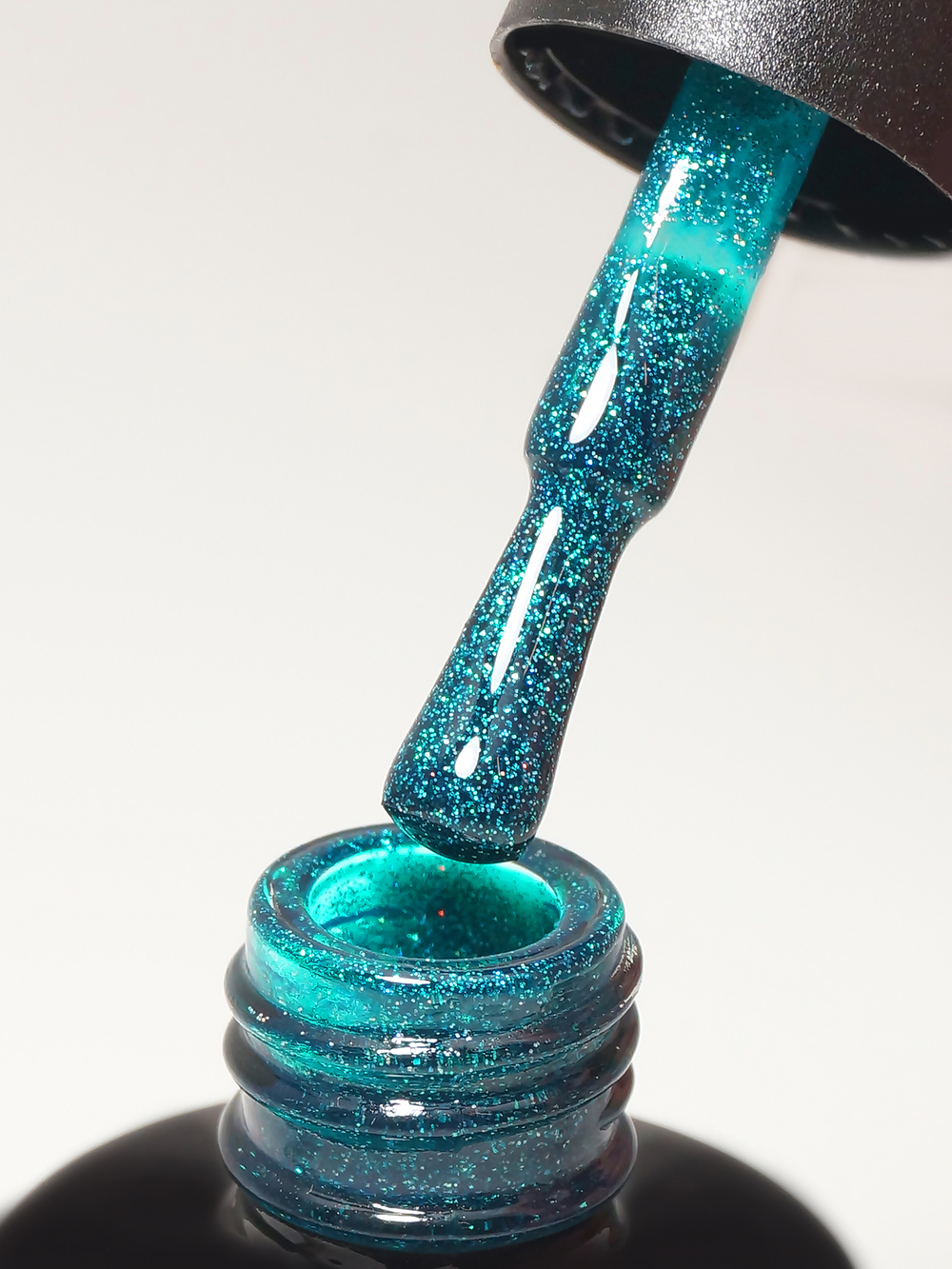 Оттенок #005 (бирюзовый) невероятного блеска коллекция «Galaxy» от «Foxy expert». Такой игры мерцающих частиц Вы ещё не видели!