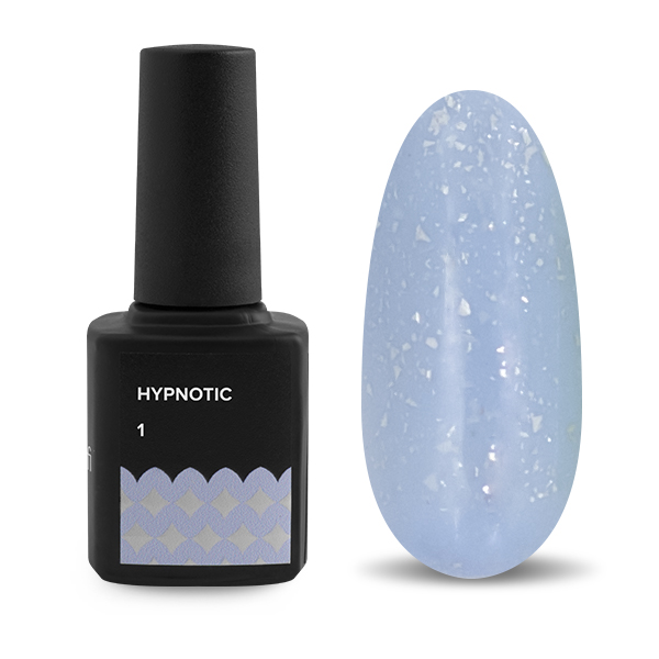 Cosmoprofi Hypnotic — гель-лаки с хлопьями серебряной потали разного размера.