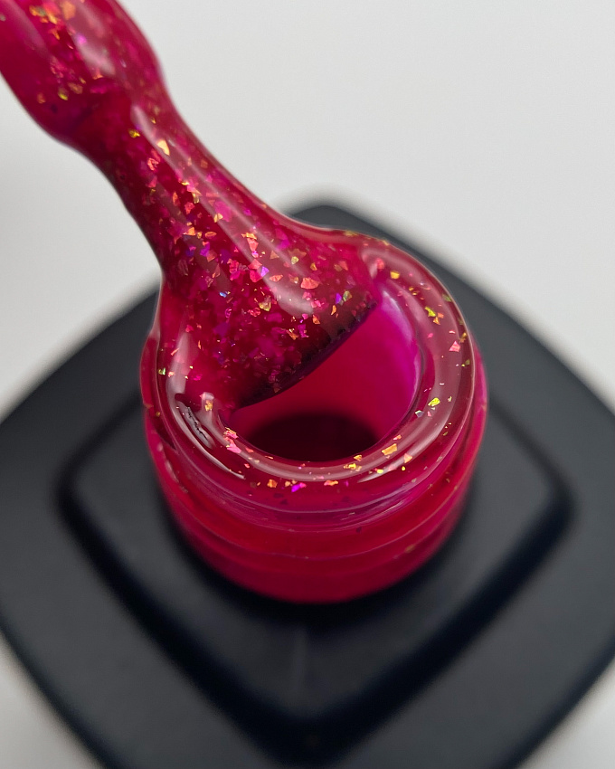Все оттенки имеют витражную основу с россыпью радужных хлопьев. За счет удобной консистенции продукт легко наносится, быстро выравнивается и не течет.
