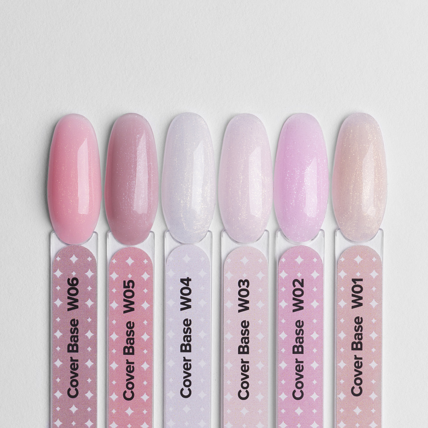 Коллекция камуфлирующих базовых покрытий Cosmoprofi Cover Base Wow — это 6 оттенков с деликатным сиянием, которые легко распределяются по ногтевой пластине и скрывают все ее недостатки.