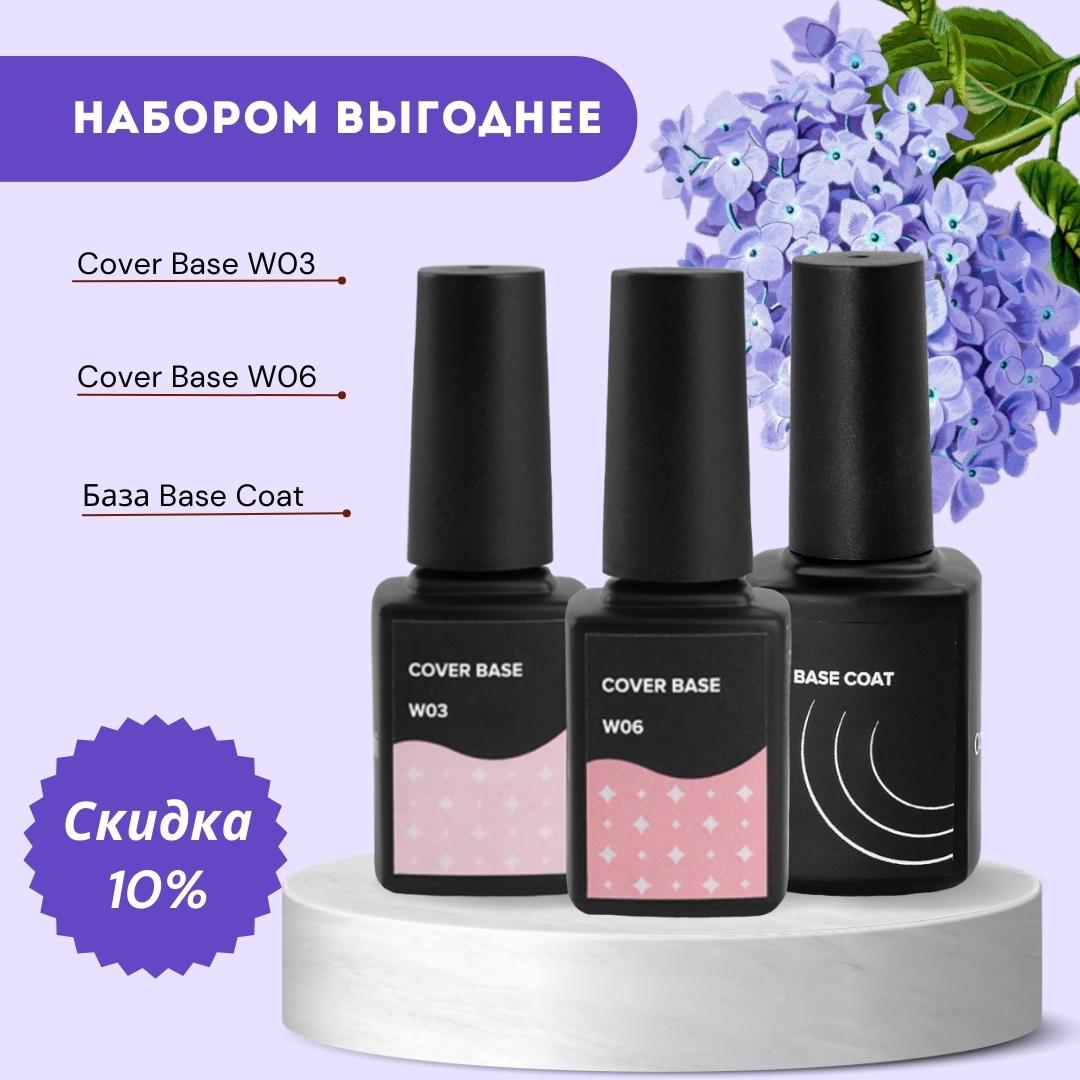 Камуфлирующая база W03 + Камуфлирующая база W06 + База Base Coat, Cosmoprofi