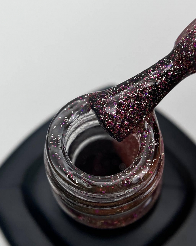 Cosmoprofi Top Mix Pink — финишное покрытие без липкого слоя с блестящими разноцветными вкраплениями.