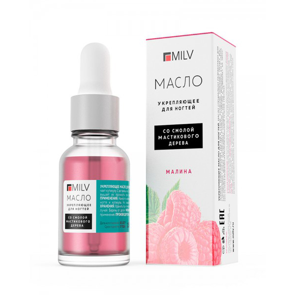 Укрепляющее масло для ногтей со смолой мастикового дерева»Малина» 15 мл, MILV